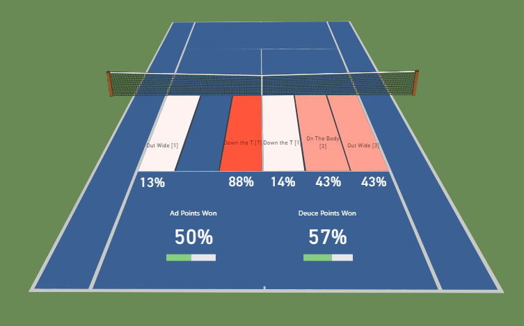 The average rally length for the match was a staggering 6.48 shots, which, for those who are new to Tennis Analytics, is notably higher than the typical benchmark for men’s tennis.